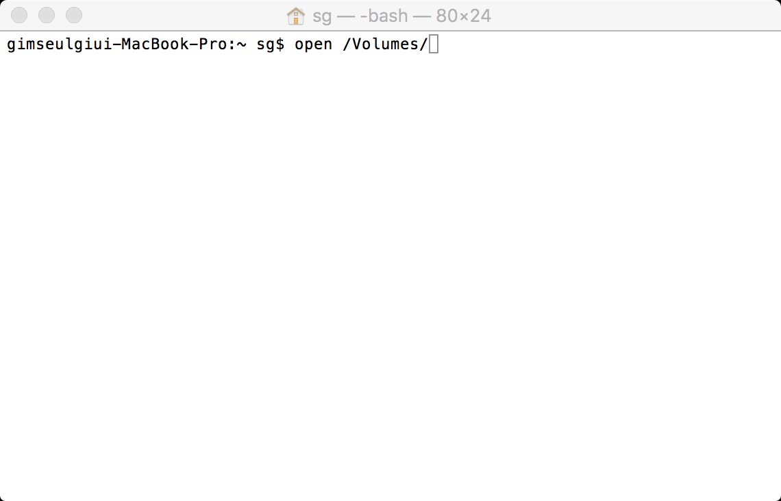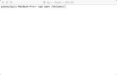 open /Volumes/ 를 입력하면, Finder 창이 나올 것이다. 그러면 사용하면 된다.