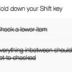 shift키를 눌러서 checkbox 연속 선택하기 https://github.com/KIMSG/javascript30/blob/master/day10/index.html 1 2 3 4 5 6 7 8 9 10 11 12 13 14 15 16 17 18 19 20 21 22 const checkboxes = document.querySelectorAll('.inbox input[type="checkbox"]'); let lastChecked; function handleCheck(e) { let inBetween = false; if(e.shiftKey && this.checked){ checkboxes.forEach(checkbox => { console.log(checkbox); if(checkbox ..